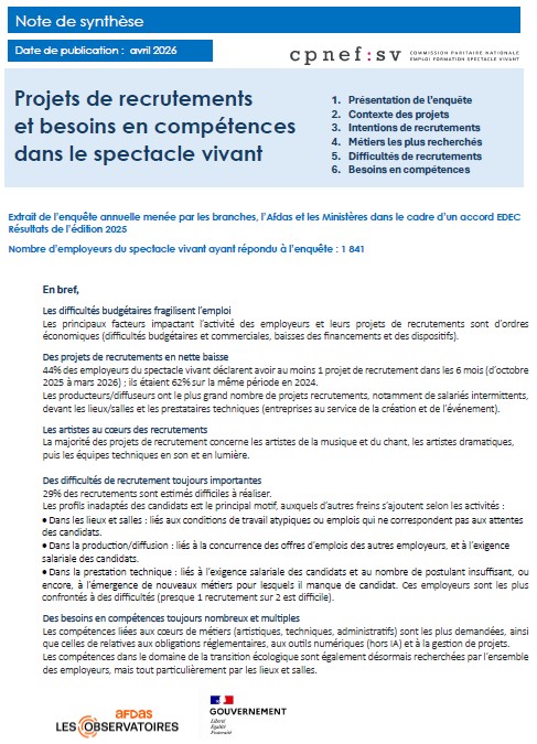 Enquête auprès des employeurs du spectacle vivant sur leurs projets de recrutements